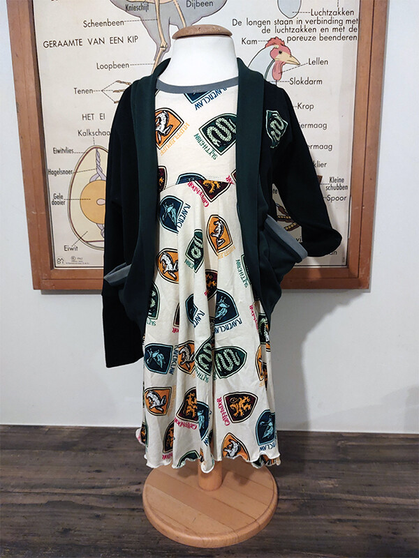 Wordt leerling van de beste tovenaarsschool en laat je team spirit zien met deze klas cardigan! De jurk in de foto's is een apart product.