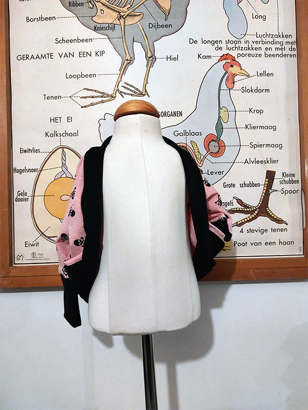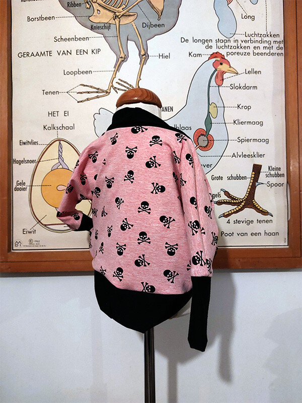 Een stoere roze cardigan met een zacht kantje.