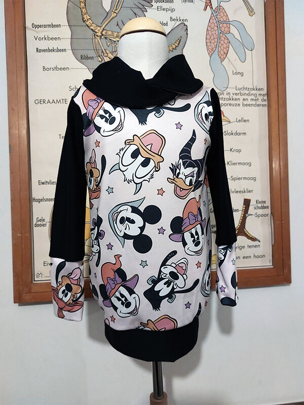 Vier halloween samen met Mickey, Minnie, Goofy, Katrien, Donald en Pluto.