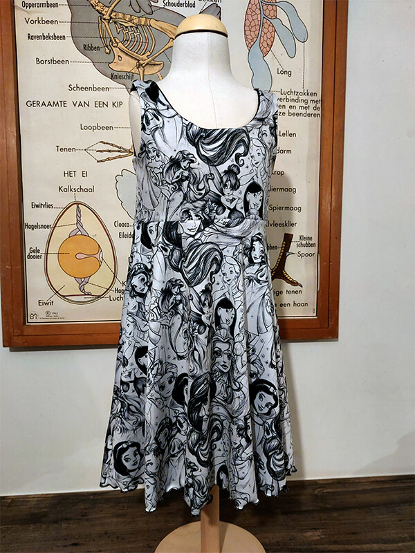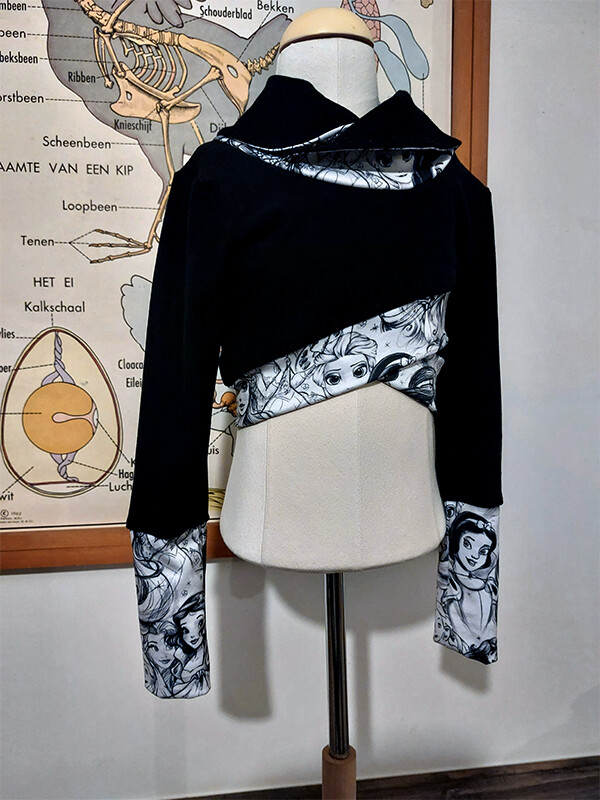 Waan je een stoere prinses met deze toffe jurk set. Deze set bestaat uit een mouwloze jurk en een crop top trui met lange mouwen en een col. Beiden zijn met een leuke prinsessen print.