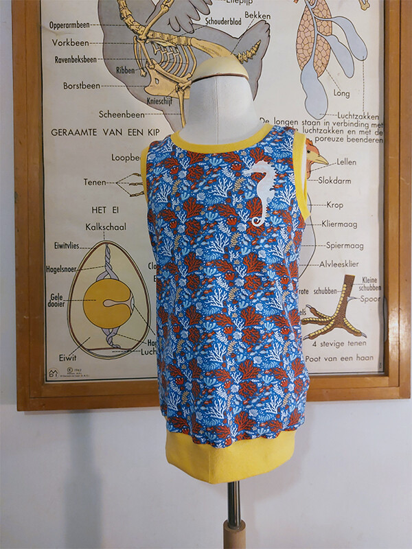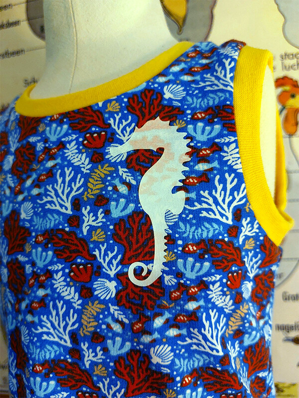 Waan je in de zee in deze toffe, mouwloze, tuniek met leuk zeepaardje accent.
