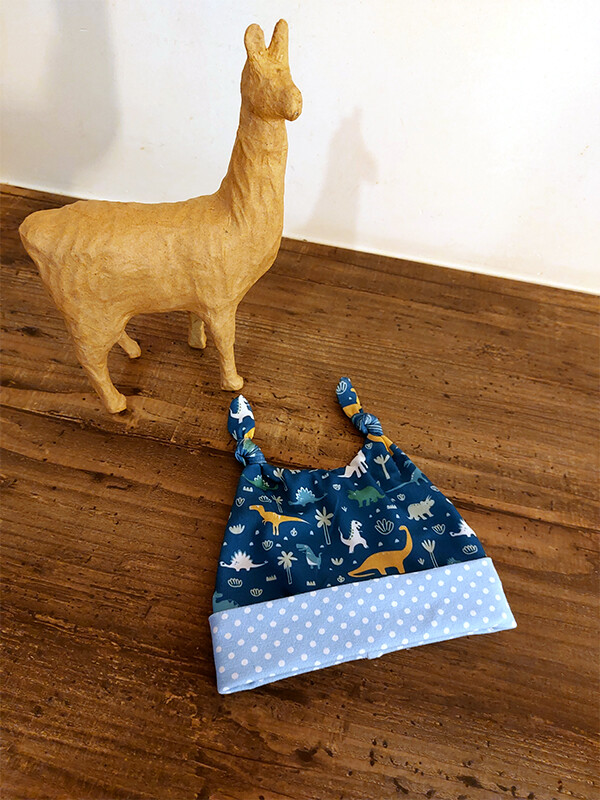 Dit schattige baby mutsje met leuke dinosaurus print is zacht en stoer.