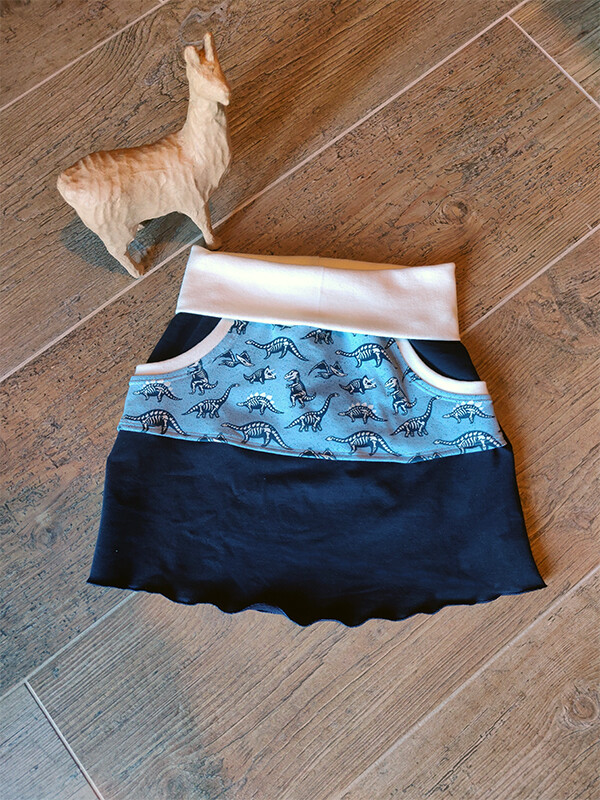 Een mooie, zachte rok met stoere dinosaurus skeletten. Herken je ze allemaal?