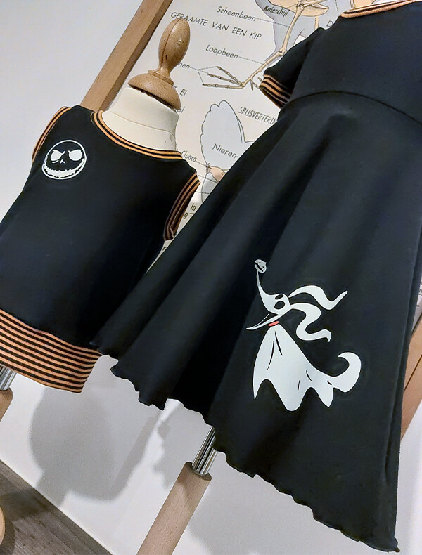 Ontdek onze unieke kinderkleding die niet alleen stijlvol is, maar ook ontworpen is om jarenlang mee te gaan! Dit speciale t-shirt met het iconische Jack Skellington van "The Nightmare Before Christmas" is een echte must-have voor elke jonge fan. Met zijn glow-in-the-dark accent brengt het een beetje magie in het donker, perfect voor avontuurlijke nachten.