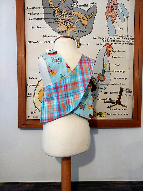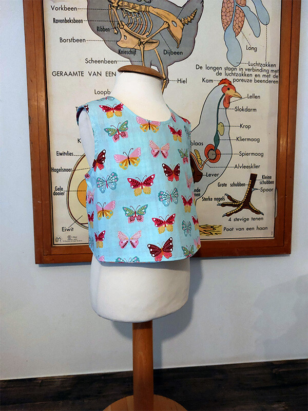 Een luchtige top met speciale rug, ideaal voor het mooie lente en zomerweer. Indien gewenst kan deze volledig omkeerbaar gemaakt worden, dan naaien we er geen maatlabel erin. Let op: dit is geen meegroei jurk.