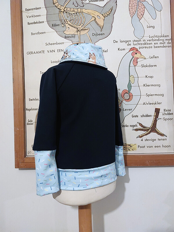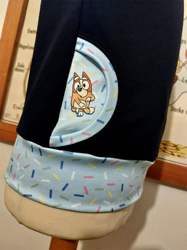 Dans mee in deze trui met vrolijke Heeler familie print! Zacht en warm, dans je de hele herfst en winter door. De twee zusjes spieken door de zakken heen. Indien er andere karakters van de print in de zakken zichtbaar moeten zijn, laat het gerust weten.